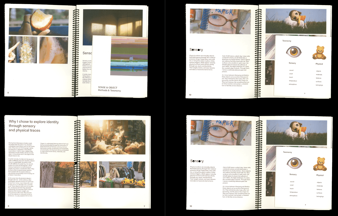 Sense & Object explores how sensory experiences can be translated into visual form. Focusing on elements such as smell, sound, and touch, the project investigates how intangible perceptions can be mapped through typography, color, and composition. By collecting and reinterpreting everyday sensory fragments, the work constructs a visual system that connects personal memory with physical objects, making invisible experiences perceptible.